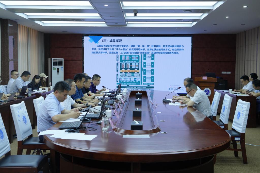 经过前期形式审查、网络评审等环节,共有20项教学成果入围终评。评审现场,各项目汇报人从成果简介、成果主要解决的教学问题与解决方案、创新点、推广应用效果等方面作了汇报。随后,评审专家针对项目汇报内容进行质询。答辩结束后,评审专家对申报材料进行细致审阅,结合汇报与答辩情况展开深入讨论评议,并通过评分方式确定拟获奖项目名单及奖项等级。